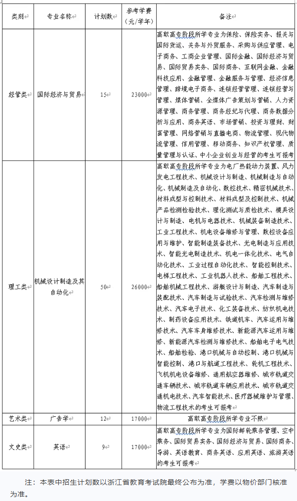 第十三条 具体招生专业信息如下表:
